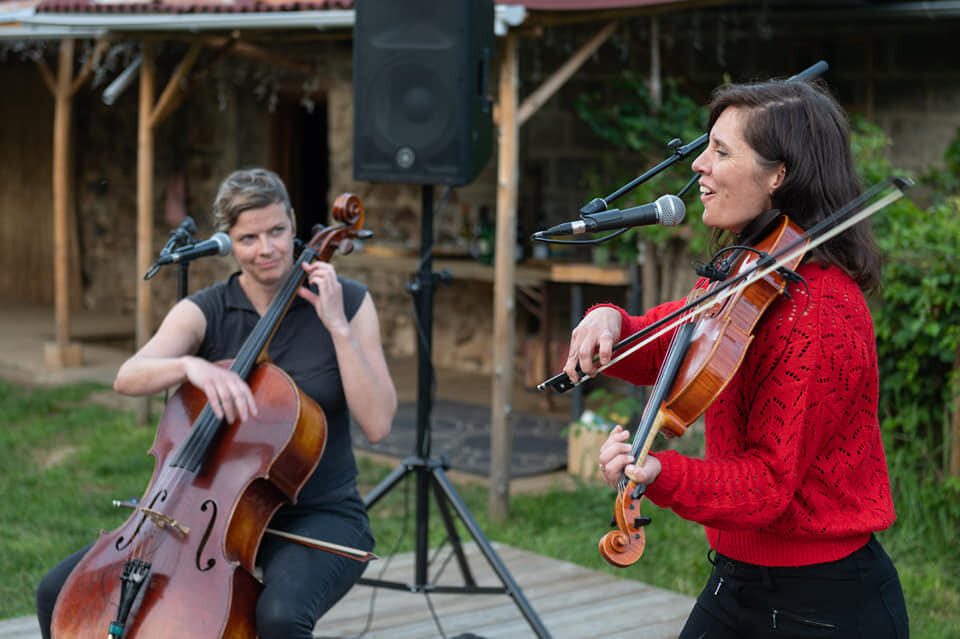 Archères, c'est un "quatuor à deux voix", une rencontre poétique et puissante de deux voix féminines, deux musiciennes grenobloises qui, un jour de juillet 2020 ont investi les cours et places publiques avec leurs huit cordes frottées et leurs deux voix pour éloigner l'idée même de geste-barrière. Ensemble, cordes, peaux, bois et souffles tissent un écrin libre entre leurs compositions originales ainsi que des textes et des reprises arrangées d'Emilie Loizeau, Philippe Katerine, Colette Magny, Henri Salvador, Jean Giono, Piers Faccini, avec un goût prononcé pour l'acoustique et la mise à nu. Parce qu'il n'y a pas que le vocoder dans la vie !