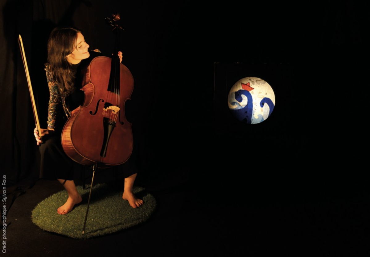Tout commence par la rencontre entre un violoncelle, un ciné-lune, deux rêveuses, un tapis herbu et une lune fugueuse. Au fil du spectacle, les ombres inaccessibles se transforment en objets avec lesquels les enfants, leurs accompagnants et les artistes vont pouvoir jouer et réinventer un langage commun. En partageant les éléments scéniques au public, nous leur proposons de les manipuler avec nous ; permettant ainsi de développer leur motricité fine, leur écoute, leur curiosité et de se mettre en lien les uns avec les autres. La frontière scène/salle, abstraite pour un public si jeune, s'effaçant ainsi au profit d'une aventure collective.