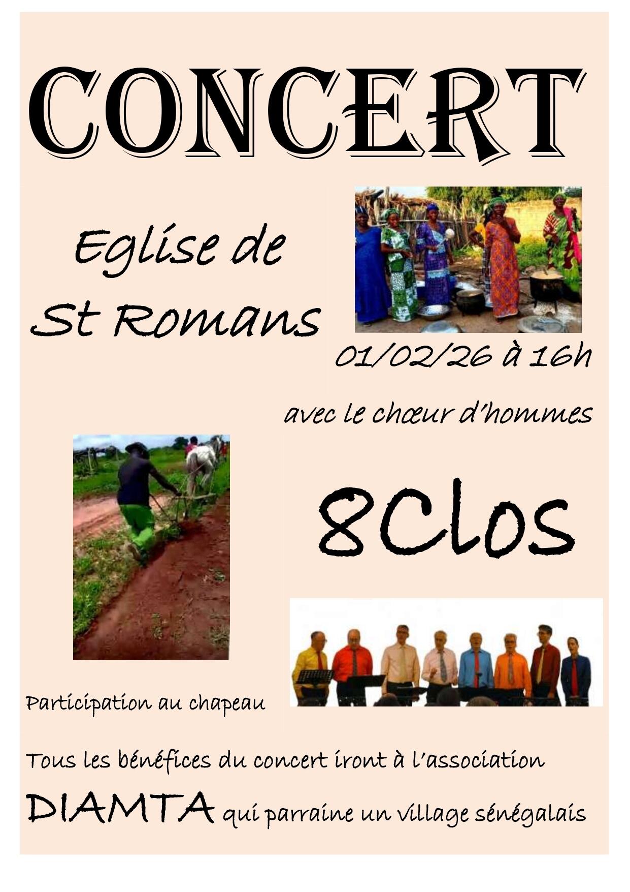Concert caritatif avec le chœur d'homme 8 clos. Tous les bénéfices du concert iront à l'association DIAMTA qui parraine un village sénégalais.