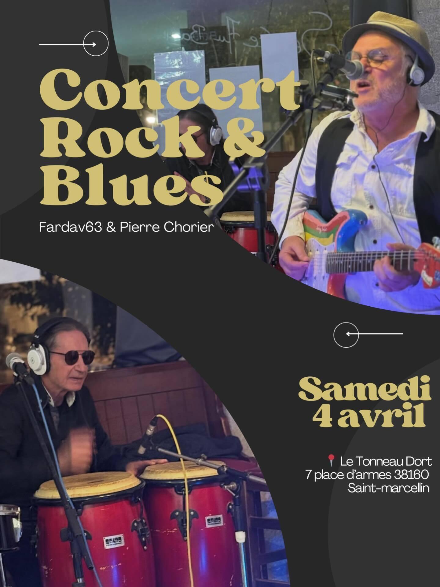 Préparez-vous pour une soirée qui va faire vibrer Saint-Marcellin ! Le talentueux Fardav63 avec Pierre Chorier seront en concert chez Le Tonneau Dort pour une session rock/blues pleine d'énergie et d'émotions.