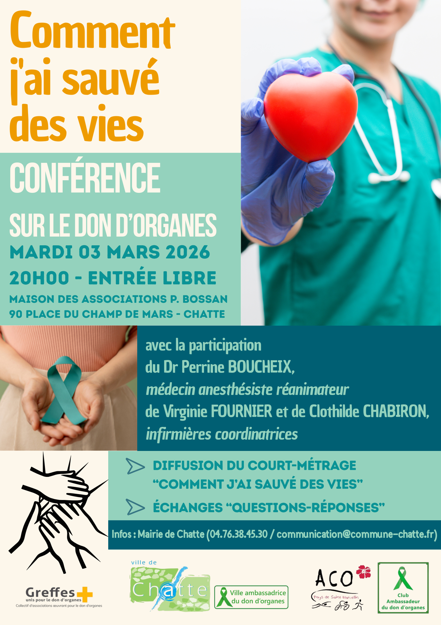 Soirée conférence sur le don d'organes : diffusion du court-métrage "Comment j'ai sauvé des vies", suivi d'un échange "questions-réponses".