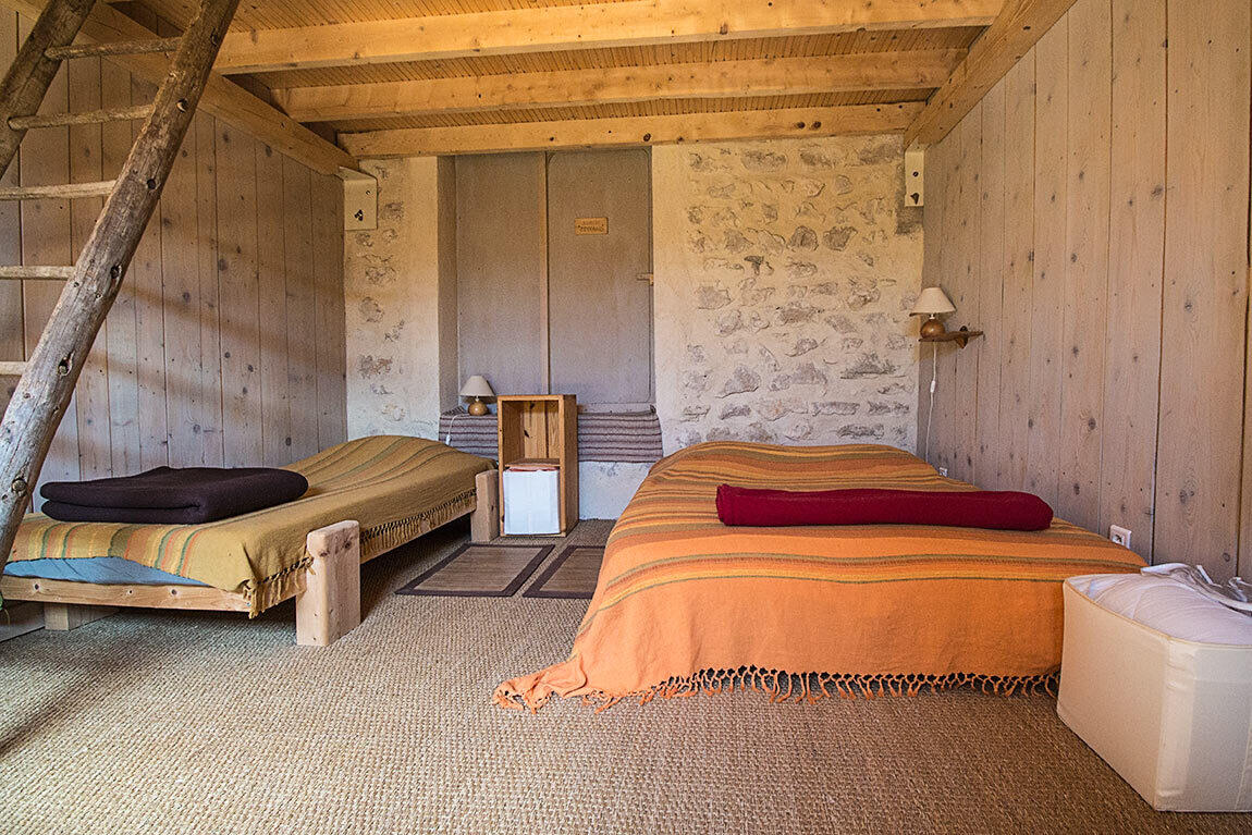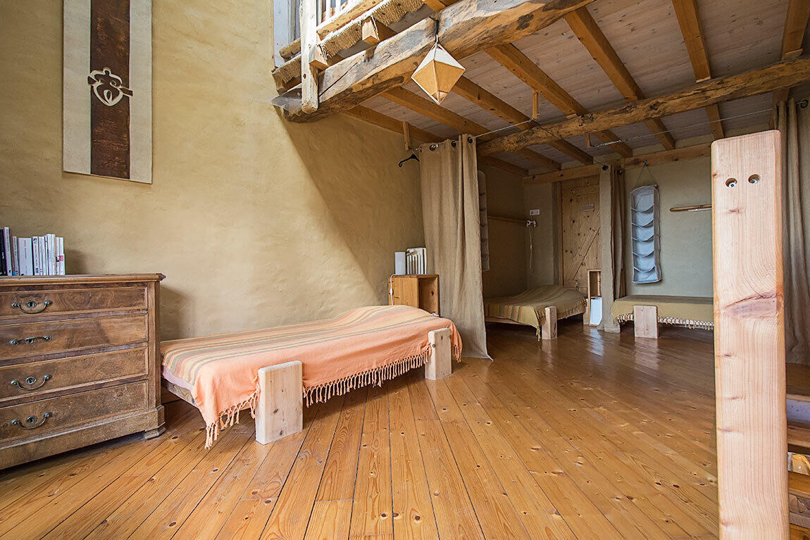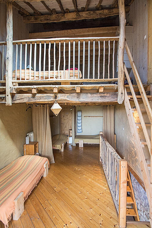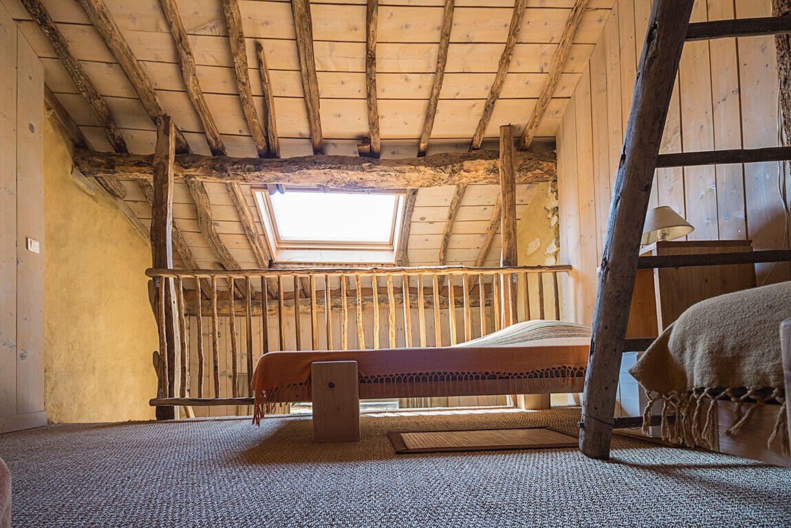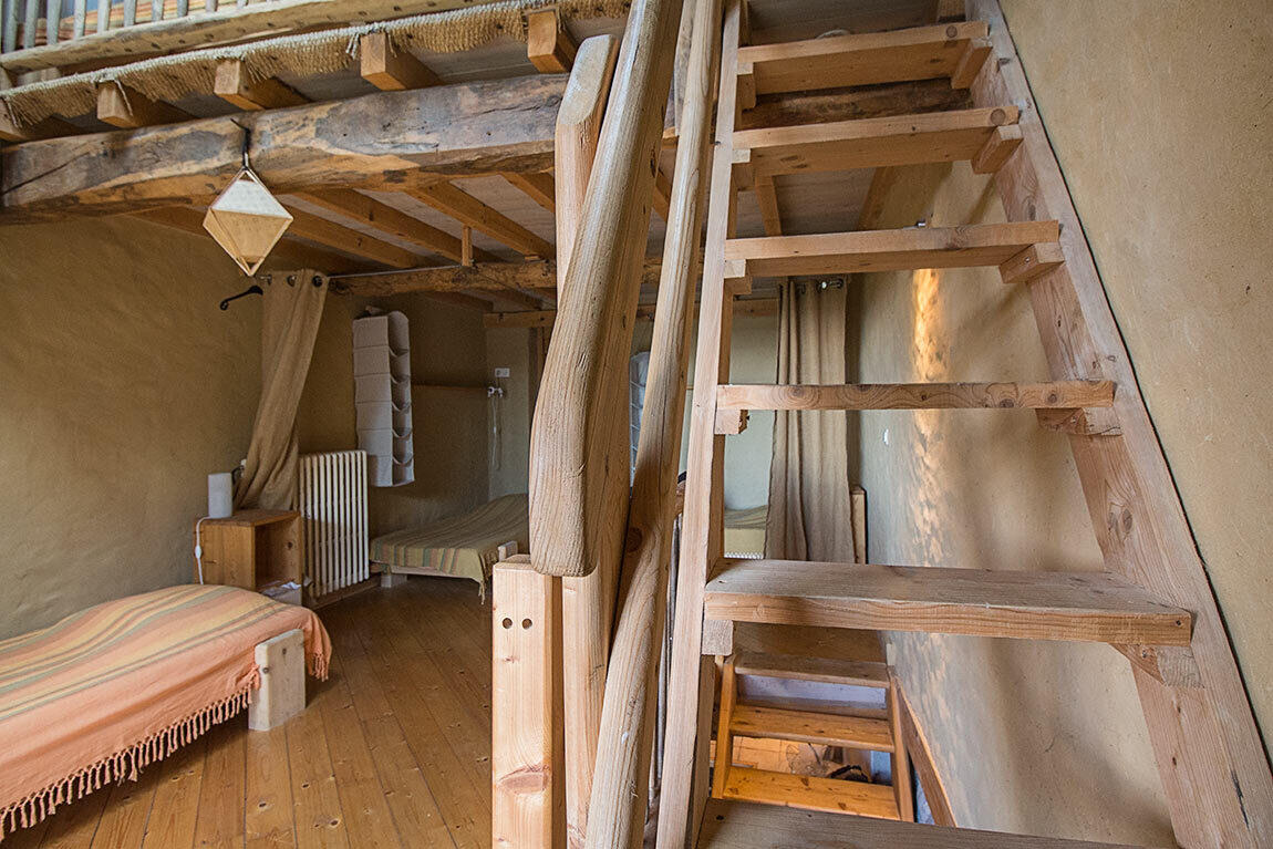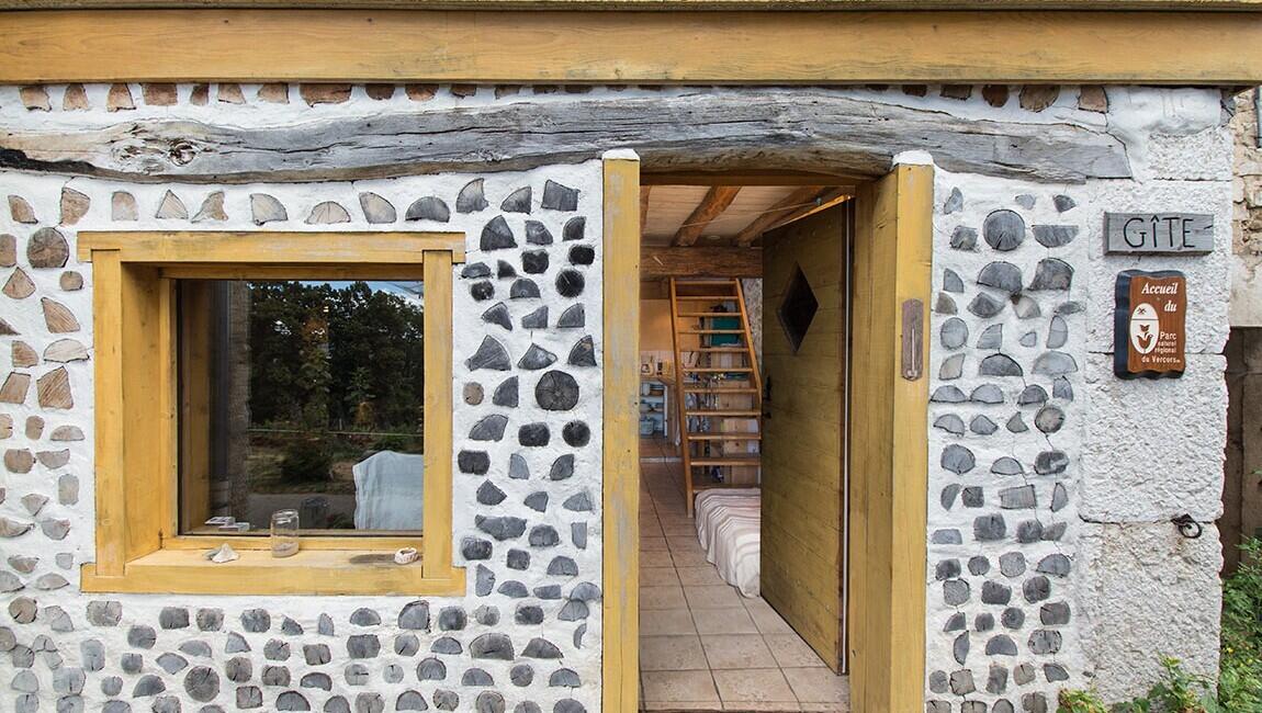 Les murs du gîte font partie d'un grand corps de bâtiments d'une ancienne ferme du Vercors.La rénovation a été entreprise essentiellement avec des matériaux écologiques et des éléments de récupération de l'ancienne ferme afin de préserver un maximum de cachet