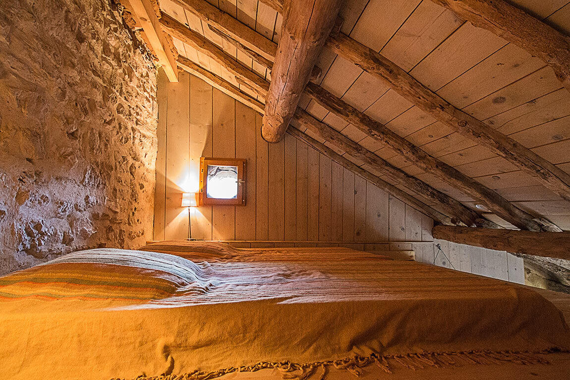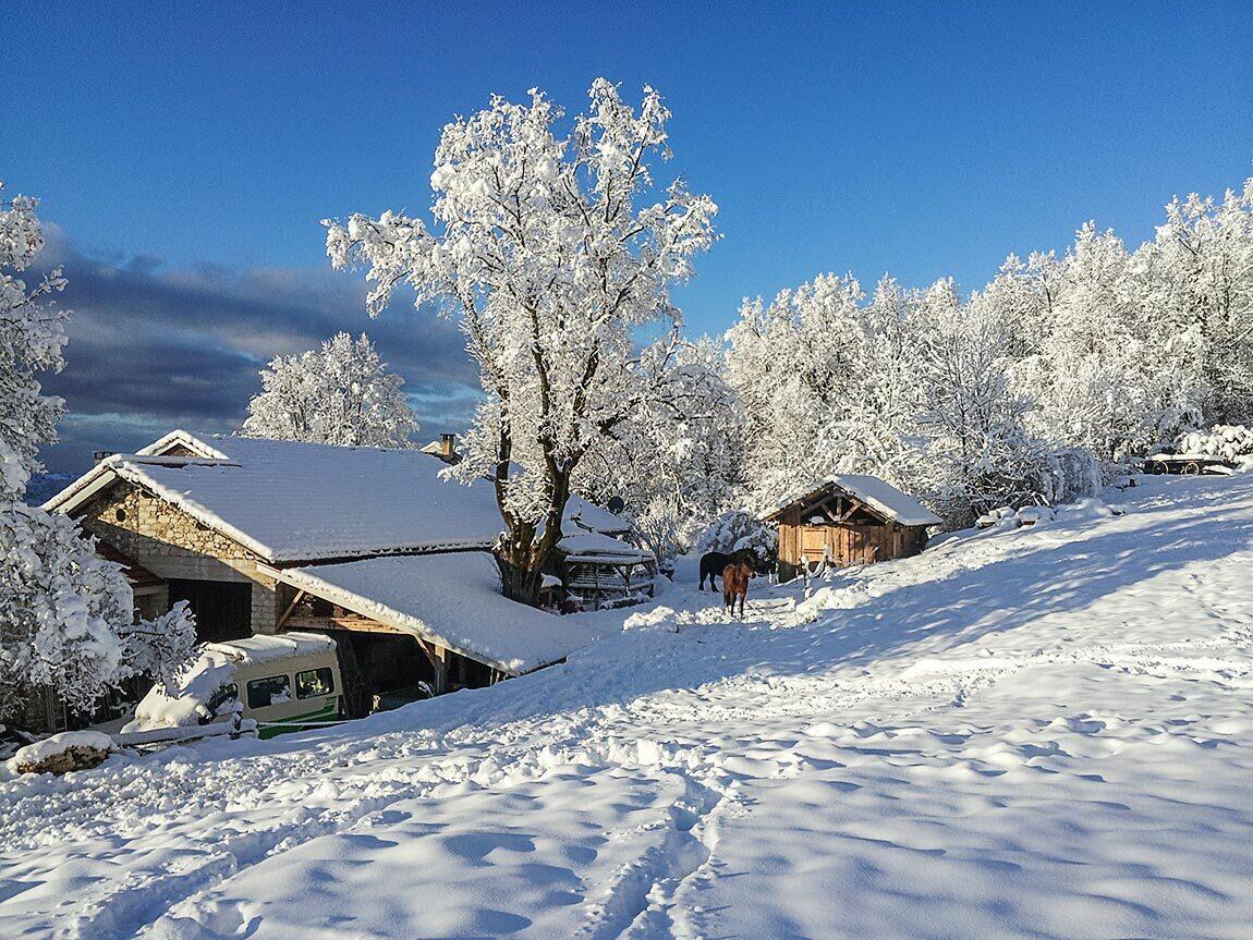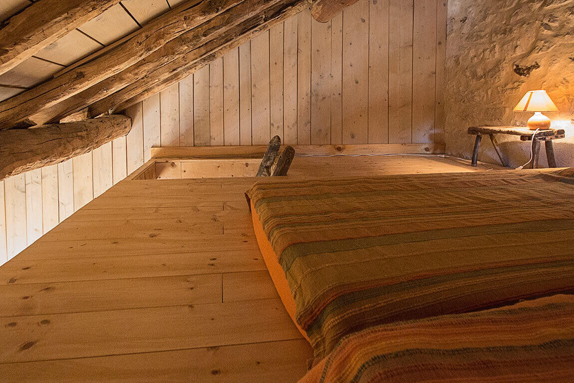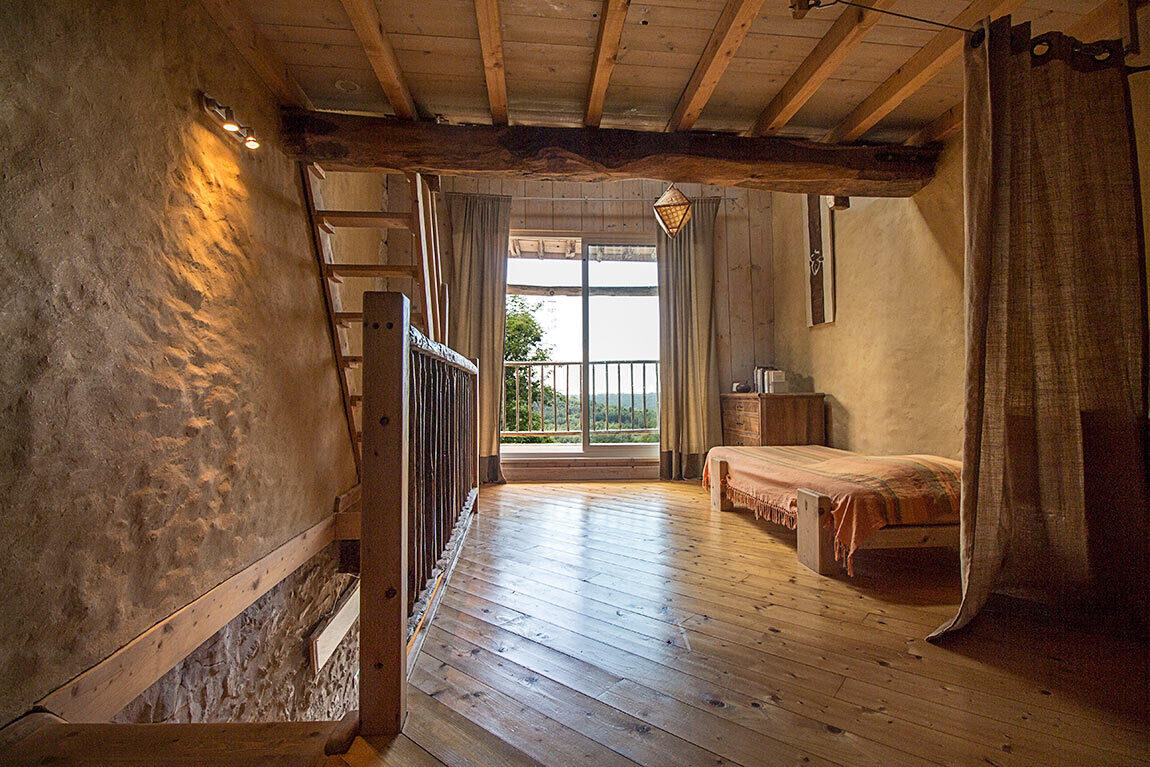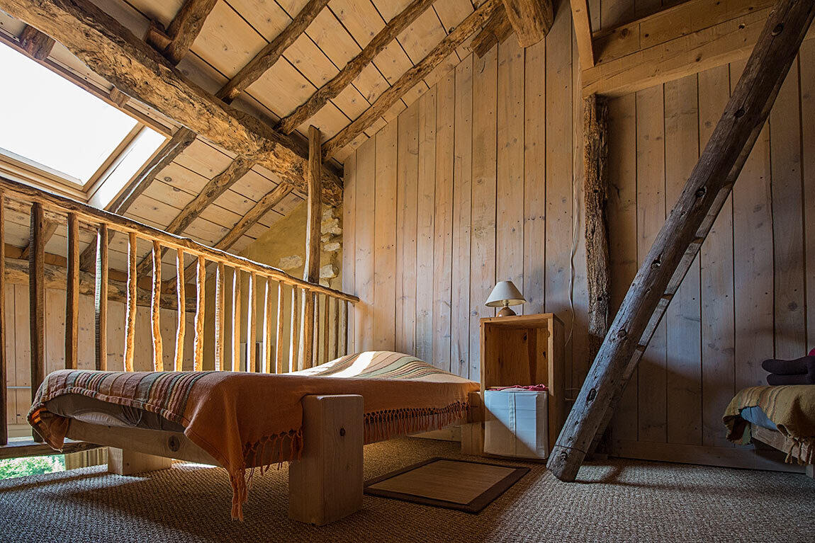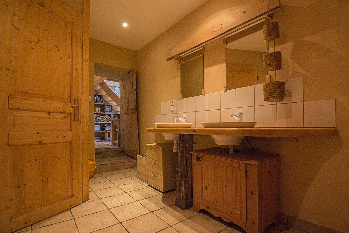 Les murs du gîte font partie d'un grand corps de bâtiments d'une ancienne ferme du Vercors.La rénovation a été entreprise essentiellement avec des matériaux écologiques et des éléments de récupération de l'ancienne ferme afin de préserver un maximum de cachet
