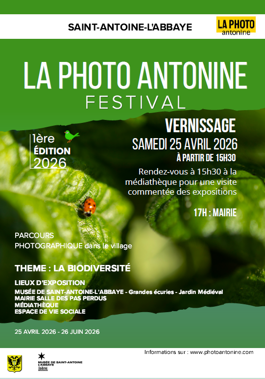 Le festival La Photo Antonine propose un parcours photographique à travers le village de Saint-Antoine-l'Abbaye, mettant en lumière le thème de la biodiversité. Les expositions sont réparties dans plusieurs lieux emblématiques : le Musée de Saint-Antoine-l'Abbaye, les Grandes écuries, le Jardin Médiéval, la Mairie (salle des pas perdus), la Médiathèque et l'Espace de vie sociale.