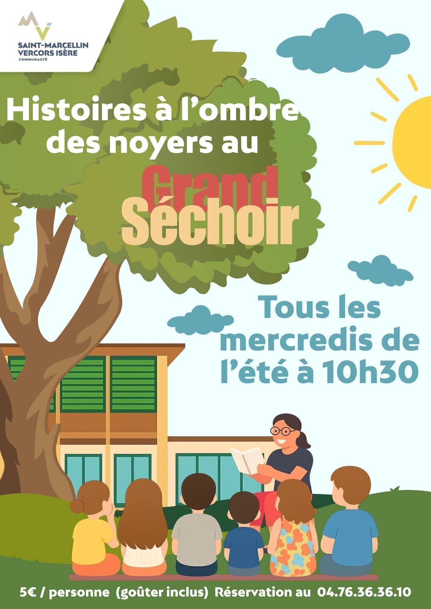 Sandrine de la Cie Et roulent les mots a sélectionné plein d'histoires amusantes, touchantes, étonnantes et captivantes. Alors installez-vous confortablement à l'ombre des noyers du Grand Séchoir pour écouter ces belles histoires !