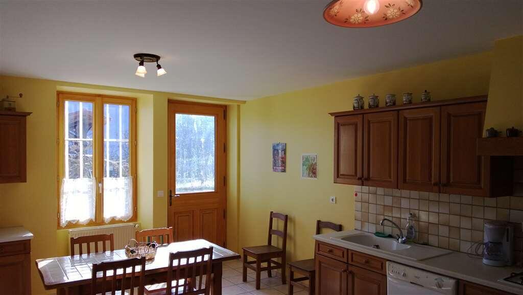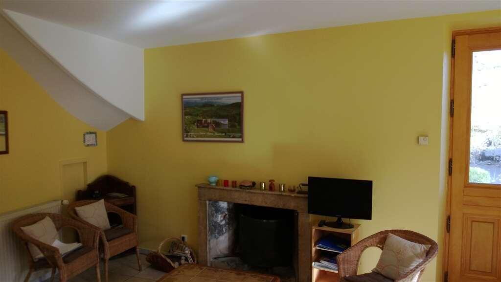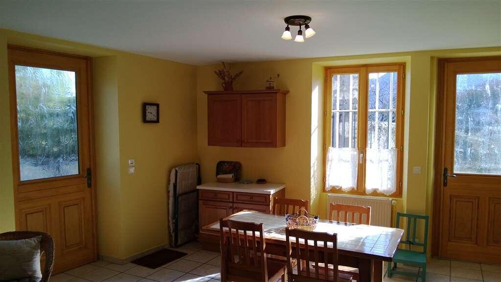 Notre gîte dispose au rez-de-chaussée d'un grand séjour-cuisine très lumineux et du salon avec une cheminée pour les journées d'hiver !