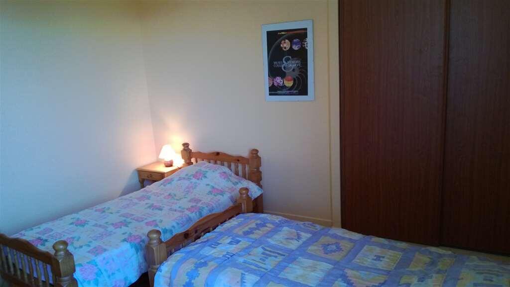 A l'étage se trouvent les 3 chambres : 2 chambres avec 2 lits une personne et 1 chambre avec un lit 2 personnes.