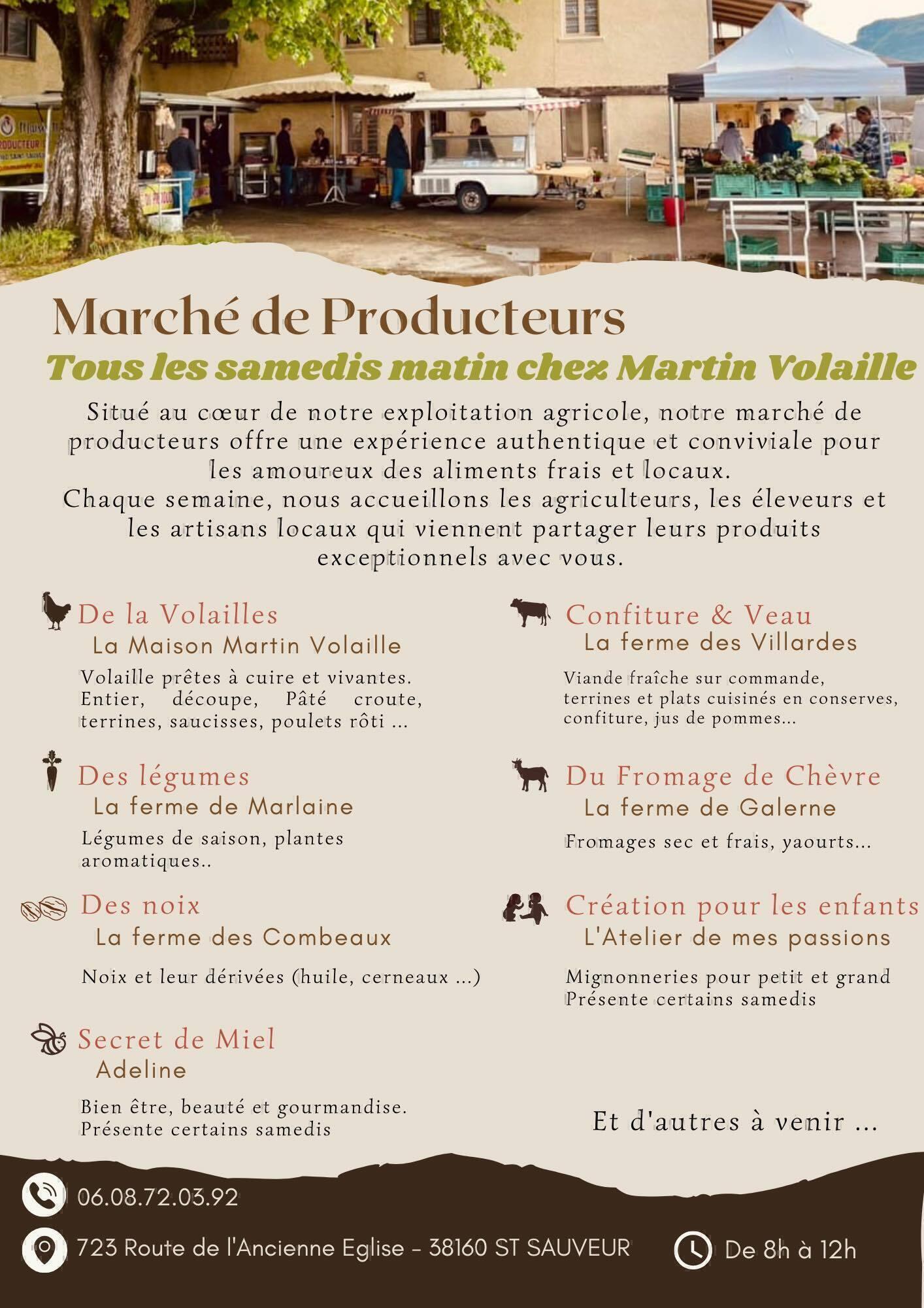 Divers produits comme de la volaille, des légumes, des noix, du fromage de chèvre ... sont à découvrir au marché des producteurs situé au cœur de l'exploitation agricole de Martin Volailles.