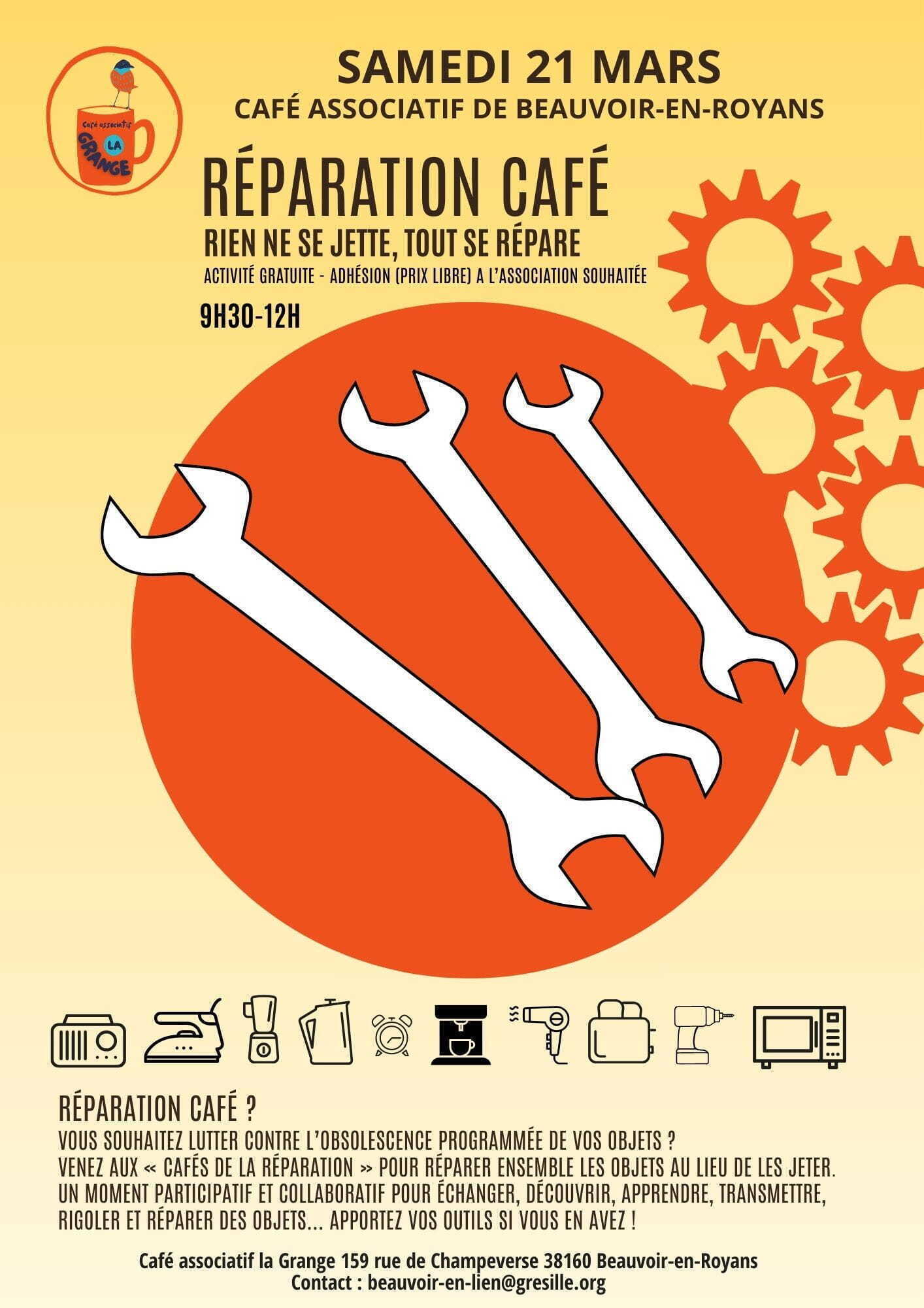 Rien ne se jette, tout se répare ! Venez avec vos objets cassés, vos outils si vous en avez, ici on répare ensemble