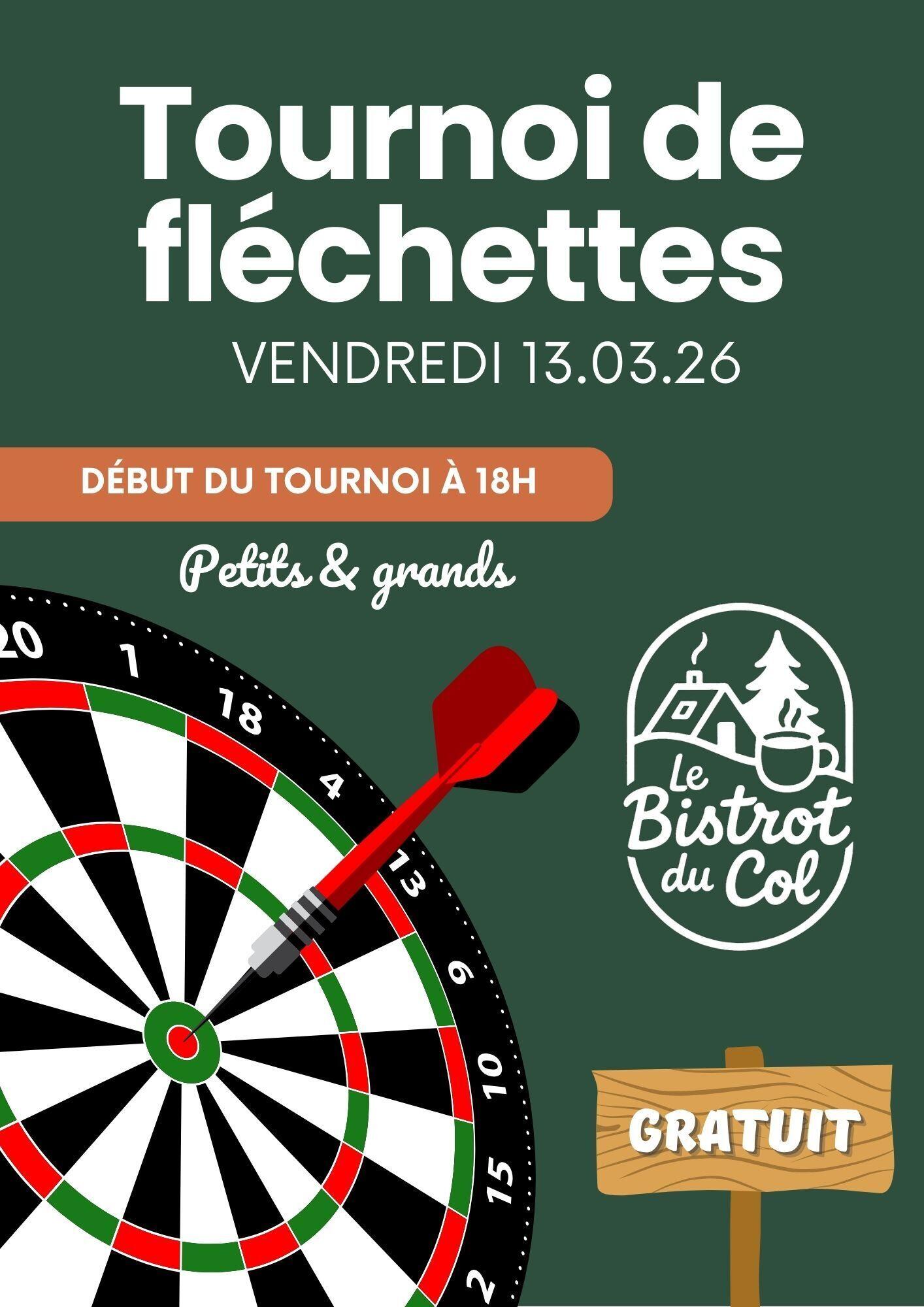 Tournoi de fléchettes Prochaine date : ven. 13 mars 2026 Voir toutes les dates Localiser : 38680 Rencurel Présentation Tournoi de fléchettes pour petits et grands Contact Périodes d'ouverture Vendredi 13 mars 2026 à partir de 18h. Tarif Gratuit. Localisation Calculer votre itinéraire 38680 Rencurel
